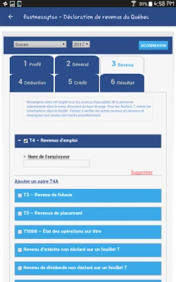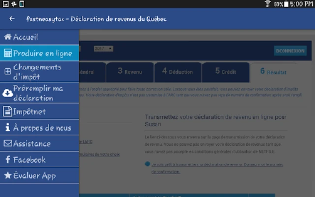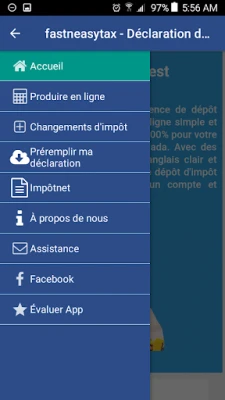 L'application fastneasytax est le moyen sans tracas de produire votre déclaration de revenus au Canada. Tout ce que vous avez à faire est de répondre aux questions simples écrites dans un anglais simple. Soumettez votre déclaration de revenus en ligne à Revenu Canada et à Revenu Québec avec notre application certifiée IMPÔTNET, vous recevrez votre remboursement d'impôt sur le revenu dans les 10 jours. Vous pouvez vérifier le statut de certification en visitant le site Web de l'Agence du revenu du Canada et le site Web de Revenu Québec.