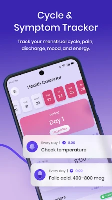 The user can store and organize information about fertility, gynecological symptoms, and documents related to sexual health. Access to data is fully user-controlled. No clinical or diagnostic functions are included.