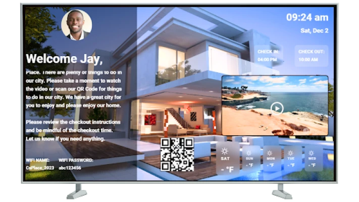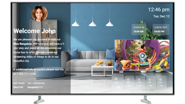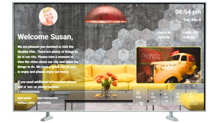 An affordable way to give your guests that luxury feeling. Start using Hello Guest Screen today and show your guests' names, as well as other useful information right on the TV.